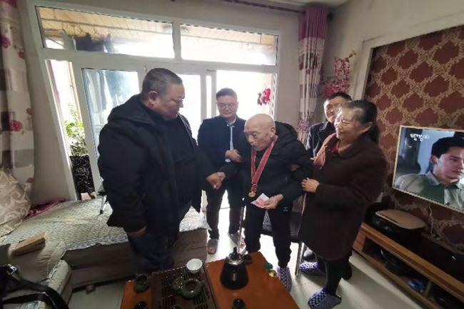 走访中,二一三队离退休科科长王高阳一行代表队党委,先后前往重庆、西安,向我队抗美援朝志愿军老战士李斌、马骥致以亲切的问候和崇高的敬意。送上了慰问金和慰问品,详细询问了解老人的身体状况、政策保障落实和当前生活情况,向他们传达了党和国家对志愿军老战士的关爱,并为老同志戴上了承载无上荣光的“中国人民志愿军抗美援朝出国作战70周年”纪念章,衷心感谢他们为抗美援朝、保家卫国做出的贡献,祝福老同志健康长寿。(通讯员:刘雯)