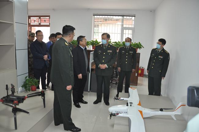 临汾军分区领导一行查看了213队自然资源临汾市卫星应用技术中心的设施设备,了解了卫星技术应用情况。