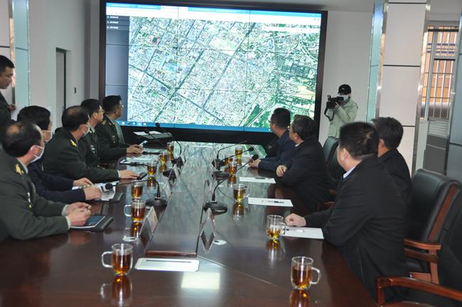 王彬司令员表示民兵是国防建设的一支重要力量,近年来临汾军分区高度重视民兵工作,现拥有应急、运输、人防等多支专业民兵队伍,目前正在筹建测绘导航分队。213队在遥感测绘、卫星应用方面拥有大批技术人员与先进的设施设备,可以通过军民合作,共同建设一支平时应急、战时应战的民兵力量,打造军民合作典范。