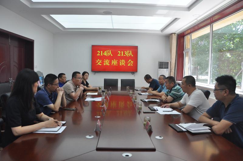 7月9日,二一四队副队长李建国带领工会副主席、离退科科长钟农,离退党支部书记赵铁臣,劳人科副科长张洳海,离退科干事王炳海一行5人到二一三队进行调研交流,二一三队党委书记赵江涛、副队长刁翊及有关科室负责人参加调研交流座谈。