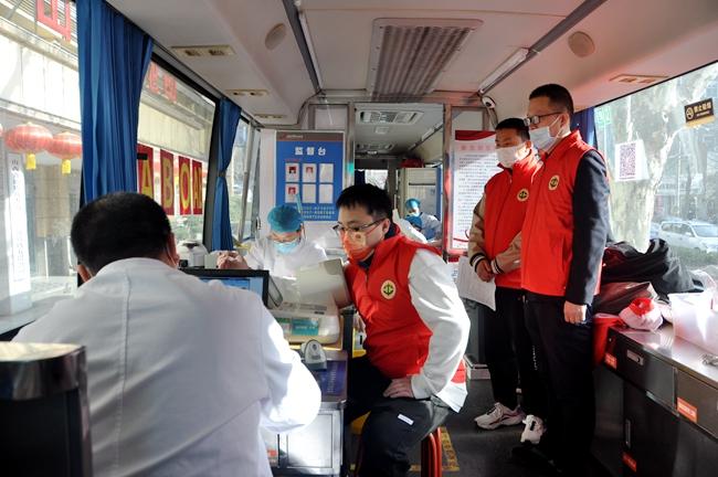 当天早上8时30分,献血车刚刚准备就绪,报名献血的职工便在现场工作人员和志愿者的指导下,依次进行亮码、测体温、信息登记、体检化验等。符合条件的献血者在采血椅前排队等候,踊跃挽袖献血。