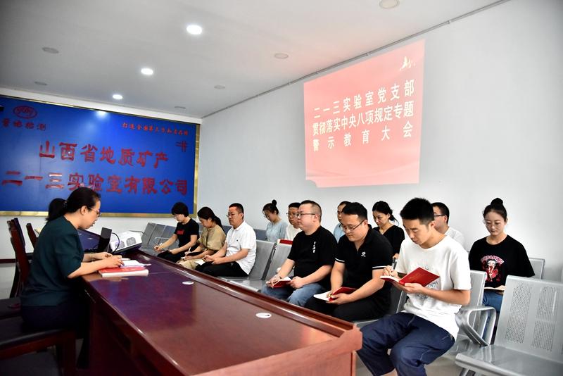 为深入贯彻落实中央八项规定精神,巩固“四风”成果,强化警示教育,严明纪律要求,进一步推进“清廉企业”创建工作,8月11日至16日,二一三地质队有限公司以党支部为单位,组织全体党员干部开展了贯彻落实中央八项规定精神专题警示教育活动。