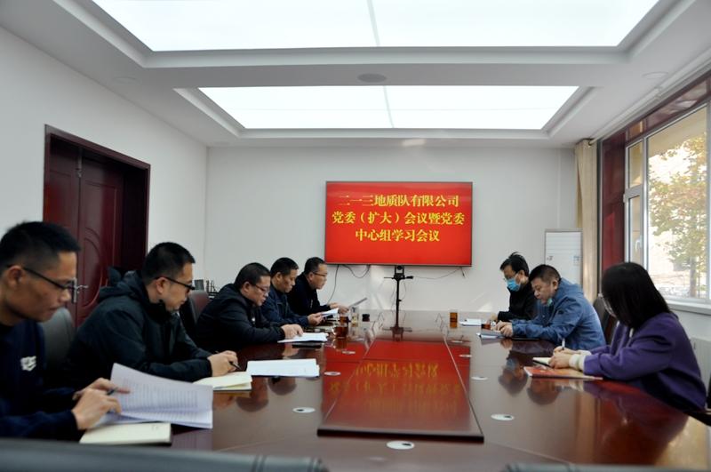 11月1日上午,二一三队有限公司召开党委(扩大)会议暨党委中心组学习会议,传达学习党的二十大精神、中共中央关于认真学习宣传贯彻党的二十大精神的决定、山西省委十二届五次全会精神和局专题会议精神。公司党委书记、董事长赵江涛主持会议并讲话。