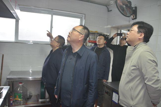 在职工食堂安全检查中,公司领导查看了食堂的用火用电安全,并仔细询问了食堂工作人员的应急安全措施。