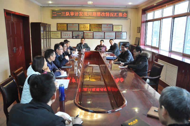 12月29日, 局审计整改领导组办公室成员、局海外公司副总经理岱兵奎,局经营处张柯楠一行二人到二一三队督查指导审计整改工作,并召开座谈会。二一三队领导及相关科室负责人参加会议。