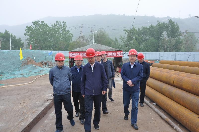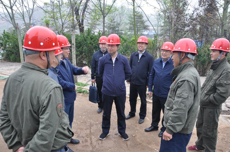 4月29日,局党委书记、局长彭东晓深入213地质队古县水源地建设及管网配套工程施工现场调研指导。局安全监督处副处长彭晓阳、213地质队队长姚文兵、党委副书记赵江涛、副队长施德刚陪同调研。