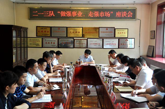 座谈会上,彭东晓局长对局党委提出的“支撑服务”工作定位和“做强事业 走强市场”的业务布局作了解读,并阐释了此次调研的目的和意义。姚文兵队长汇报了二一三队经营目标完成情况和“做强事业、走强市场”情况,与会人员从优化产业布局、拓展服务领域、健全激励机制、规范内部管理、加强队伍建设、强化科技创新等方面谈了自己的看法。