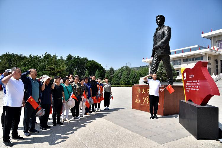 来到纪念馆前,老党员们在毛主席的铜像前脱帽肃立行注目礼,随后高举右拳,重温入党誓词,“我志愿加入中国共产党,拥护党的纲领,遵守党的章程,履行党员义务......” 一句句铿锵有力的入党誓词,铭刻在每位离退休老党员心中。