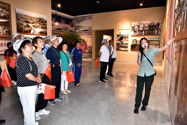 宣誓完毕后,老党员们跟随着讲解员的脚步进入纪念馆的一层,身临建党之初土地革命、抗日战争、解放战争的历史现场,与晋西老区人民共同经历那段峥嵘岁月。大家结合所学所知和过去的亲身经历,更加深刻地了解了党的历史,更加坚定了传承党的优良传统的决心。