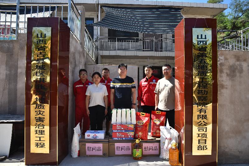 公司领导班子携相关工作人员先后赴山西黄河重点生态区(临汾)历史遗留废弃矿山生态修复示范工程项目部、山西省蒲县蒲城镇窑店村崩塌地质灾害治理工程项目部、山西省吉县城区淇北沟地质灾害治理工程项目部、尧都区地面沉降监测网建设项目部一线进行慰问,为一线工作人员送上茶饮、大米、大豆油、牛肉、风扇、藿香正气水等防暑降温用品及生活用品,详细询问一线员工们日常工作、生活情况,以及工程项目实施情况,并对工作中存在的问题进行了现场指导。领导们向广大一线地勘职工冒酷暑、战高温、始终如一坚守岗位的敬业精神表示感谢,叮嘱大家在施工的同时,要做好防暑降温工作,科学合理安排休息时间,保持良好的工作状态,时刻绷紧安全弦、把好安全关。