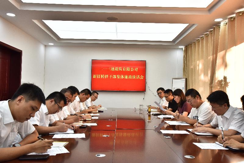 8月29日上午,为进一步强化新任转任干部责任担当和履职尽责能力,打好廉政道路强心剂和预防针,二一三地质队有限公司召开新任转任干部任前集体廉政谈话会。