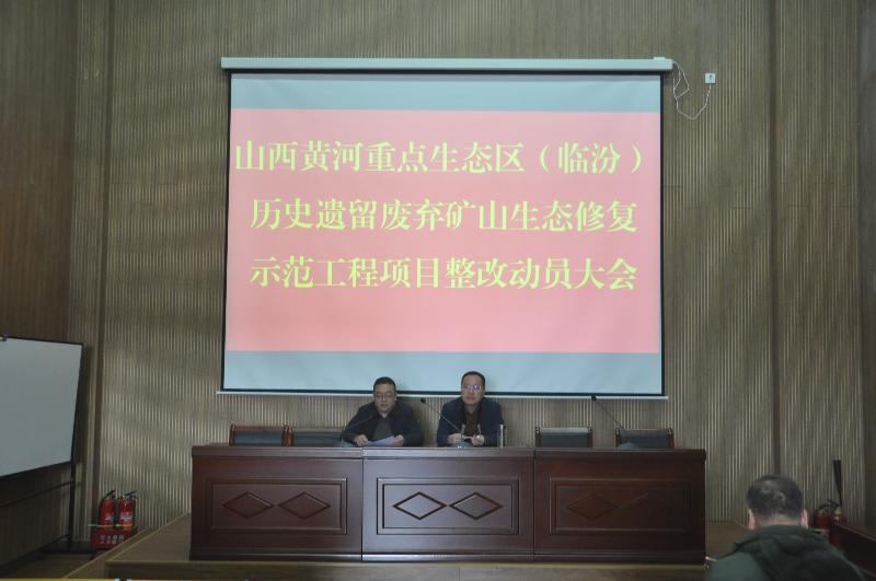 2月25日下午,二一三地质队有限公司召开山西黄河流域(临汾)历史遗留废弃矿山生态修复示范工程项目整改动员大会。公司党委书记、董事长赵江涛出席会议并作动员讲话,党委副书记、副董事长、总经理马亮主持会议。示范工程项目部全体人员、各分区管理人员,以及各标段机械租赁、劳务分包、绿化劳务等单位负责人参加会议。