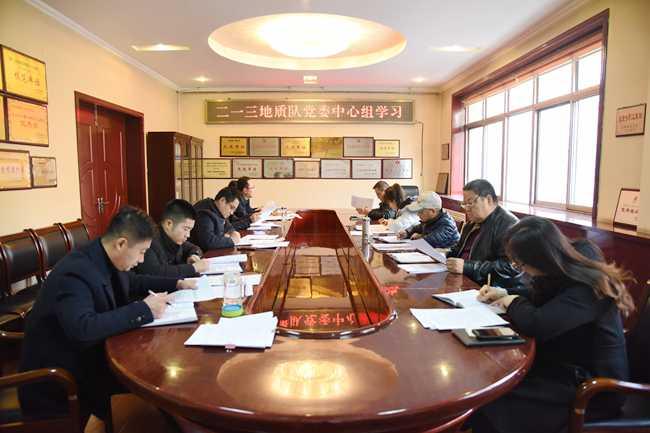 12月18日,二一三队召开党委中心组学习会议,专题学习习近平总书记重要指示精神向黄群、宋月才、姜开斌同志为代表的抗灾抢险英雄群体和王继才同志学习。党委副书记赵江涛主持会议。
