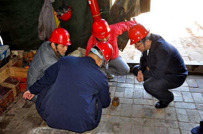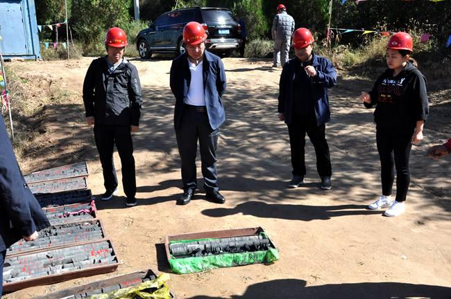 在施工现场,杜玉河队长一行实地查看了工程施工和岩心钻机使用情况,详细了解了工程概况、施工进展等情况,认真检查了岩心情况。随后,杜玉河队长一行与项目有关人员召开了座谈会。