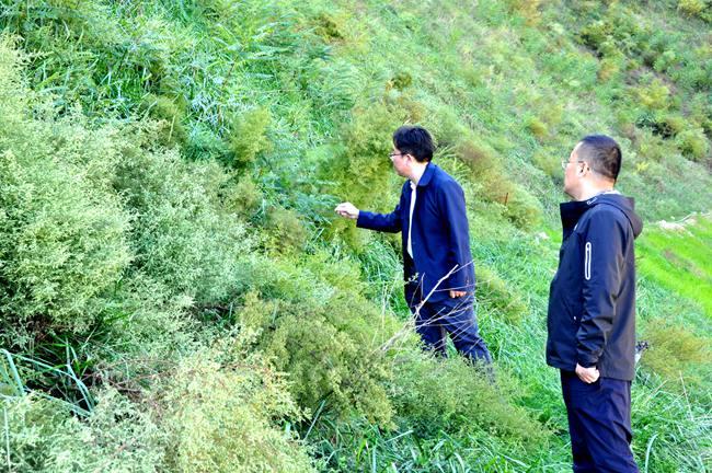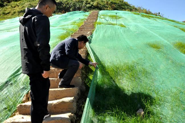 下午,杜玉河队长一行前往龙祠泉石灰岩开采区矿山地质环境治理工程的施工现场查看了石渣土坡生态修复新技术的应用情况。