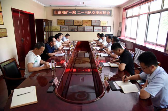 8月7日下午,山东省第一地质矿产勘查院院长常洪华、副院长王树星、总工程师高明波一行六人到二一三队考察交流。二一三队队长杜玉河、党委副书记赵江涛、总工程师吕福清及相关部门负责人参加了座谈。