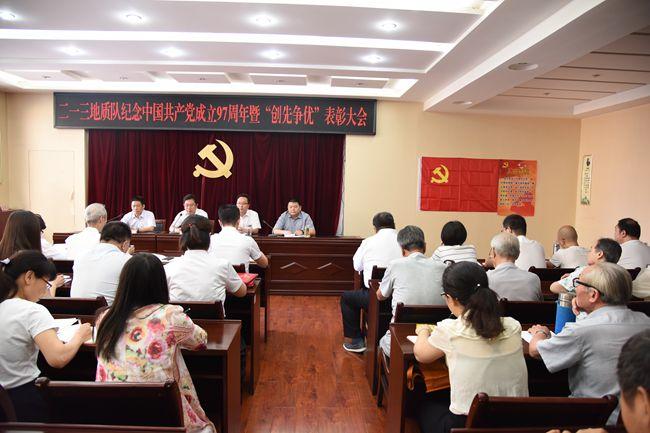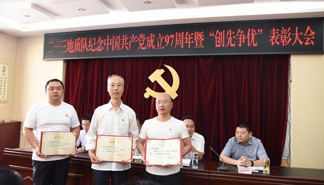 赵江涛副书记在讲话中缅怀了党的丰功伟绩,代表队党委向受到表彰的先进集体和优秀个人表示祝贺,就加强和改进全队党建工作提出几点意见:一是以推动全队经济发展为根本,发挥党员先锋模范作用;二是以夯实基层基础为目标,加强服务型党组织建设;三是以提高执政能力为主线,加强干部队伍建设。会上,赵副书记以《深刻领会党的十九大精神 全面指导地质工作》为题作党课报告,从全面推动绿色发展、解决突出生态环境问题、建设资源型经济转型发展示范区、打造能源革命“排头兵”、构建内陆地区对外开放“新高地”等五个方面阐述了新时代如何做好地质工作,并指出全队今后要从推广岩石复绿生态修复技术、加强实验测试工作和创新工作三方面进一步推动地勘转型发展,并结合实际就下一步深入学习贯彻党的十九大精神提出四点要求:一是要真正学懂、弄通、做实,把党的十九大精神转化为深化改革、促进发展的强大动力;二是深刻认识党的十九大精神对地质工作的指导意义,主动对接政府新要求,积极应对转型发展和改革;三是努力打造矿山环境修复治理、岩石边坡生态修复特色品牌;四是全面理解生态文明新发展理念,为地勘事业发展和生态文明建设作出积极贡献;他同时强调要认真学习领会彭局长党课报告的重要内涵,从严落实党的各项纪律、规矩,结合彭局长提出的“五大任务”和单位实际,真抓实干,再创佳绩。