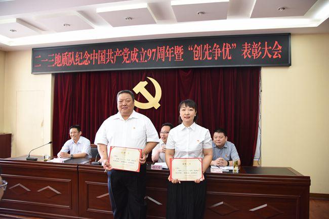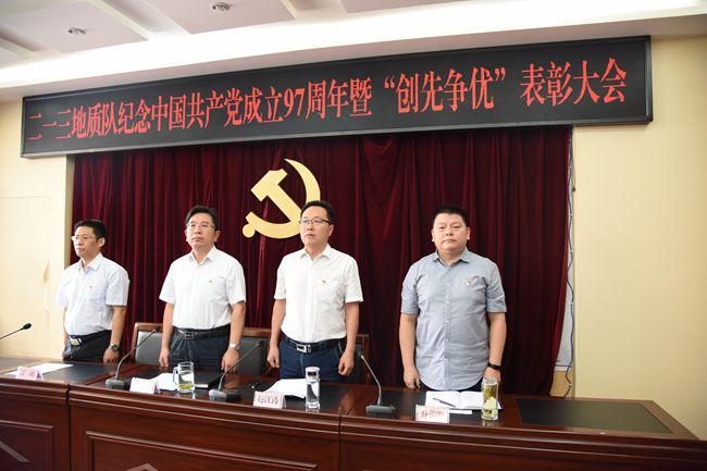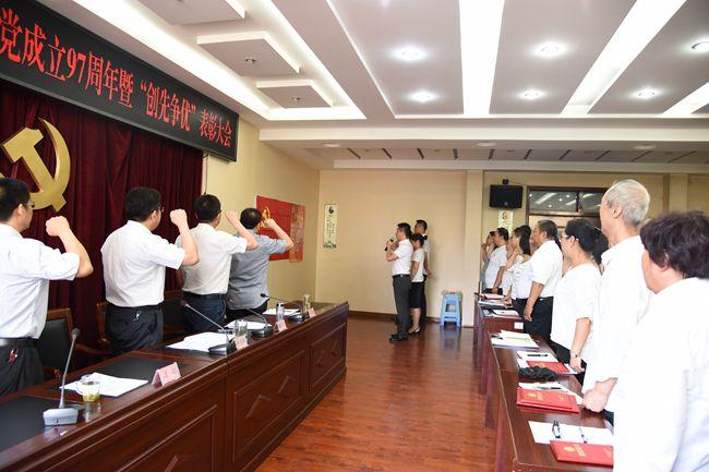会议在雄壮的《国歌》中拉开序幕,3名新党员进行了入党宣誓仪式、全体参会党员重温了入党誓词;大会表彰了1个先进党支部、2个先进党小组、9名优秀共产党员、2名优秀党务工作者、1名优秀党支部书记、1名党风廉政建设先进工作者。