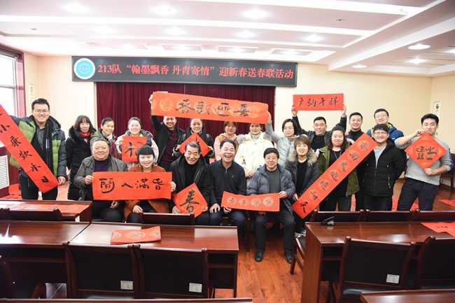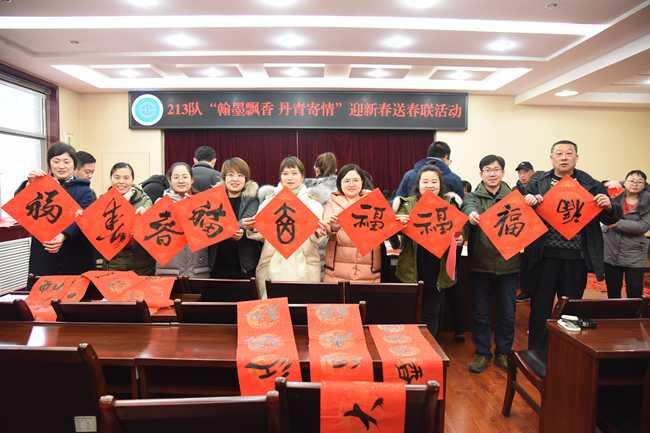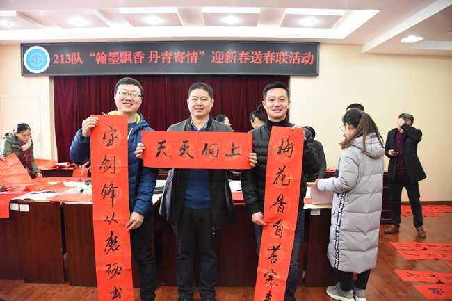 为迎接2019年猪年的到来,1月31日,二一三队举办了主题为“翰墨飘香 丹青寄情”的迎新春送春联活动。此次活动邀请了2名来自北京仁和书画院、临汾书法协会的书法家和2名职工书法爱好者为活动书写春联,全队干部职工共100余人参加。