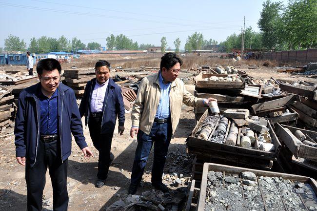 4月16日,二一三队长杜玉河,总工程师吕福清在队物管部、地质调查所、办公室相关人员的陪同下深入梁村新基地调研指导工作。