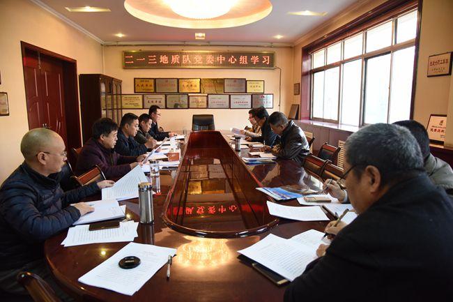 12月25日下午,二一三队党委中心组10余名成员在队二楼小会议室召开专题学习会议,集中学习了新《党章》,对学习党的十九大精神体会进行了交流,会议由队党委副书记赵江涛主持。