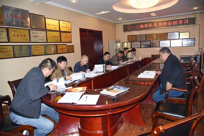 近日, 二一三队召开党委中心组会议,集中全文学习了《中国进入十九大时间》《关于进一步贯彻落实中央八项规定的实施细则》和翁局长关于二一一队《拥抱明天》的重要批示,党委中心组成员10余人参加了学习,会议由队党委副书记赵江涛主持,中心组成员结合自身工作实际交流了学习心得。