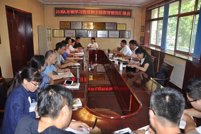 8月31日,局党委办公室主任丛时敏、调研员封原珍、副主任李耿为一行到二一三队就“两学一做”学习教育、维护核心见诸行动主题教育及“三基建设”开展情况进行督导检查,队领导、各党支部书记、党办人员共10余人参加了会议。