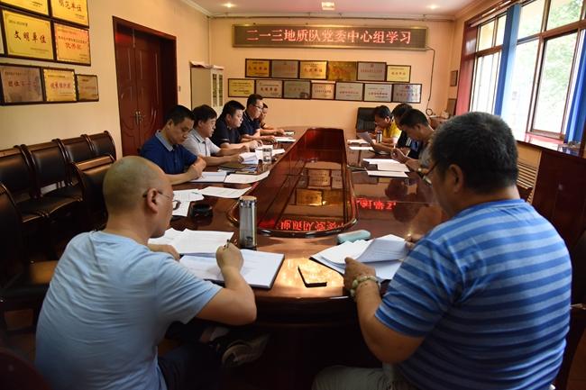 8月4日,二一三队召开党委中心组会议,集中学习了《省地勘局深入学习贯彻习总书记视察山西重要讲话精神的实施意见》和中组部、中宣部、教育部党组联合下发的《关于认真贯彻习近平总书记重要指示广泛开展向黄大年同志学习活动的通知》等,中心组成员根据各自分管工作交流发言。党委中心组成员10余人参加会议,会议由队党委副书记赵江涛主持。