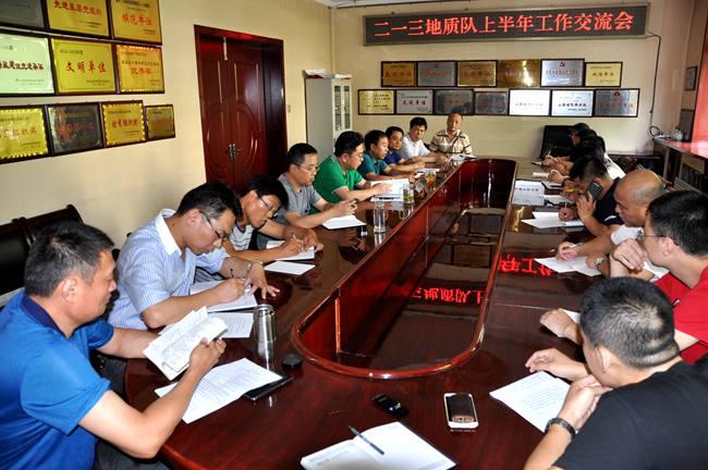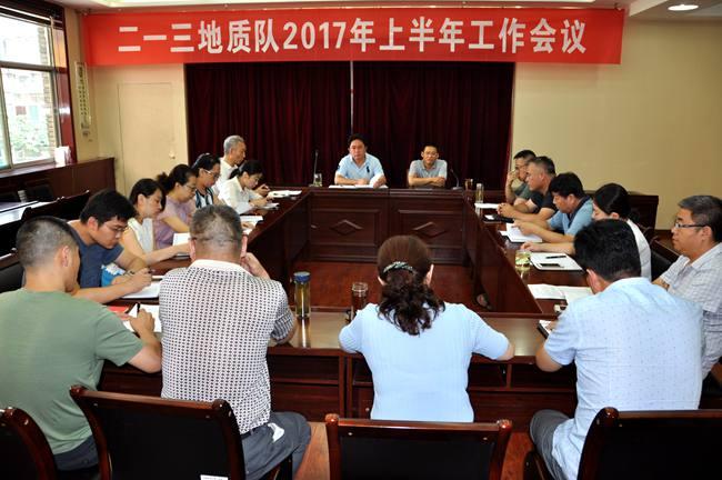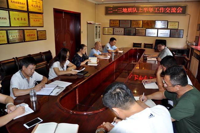 7月18日-25日,二一三地质队按照队领导分工分5次组织召开了上半年工作会议。会议分别由党委副书记赵江涛、总工程师吕福清、副队长刁翊、纪委书记乔俊卿、副队长施德刚主持,召集各自分管的经营实体和机关部门副科以上中层干部参加,杜玉河队长出席了这五次会议。