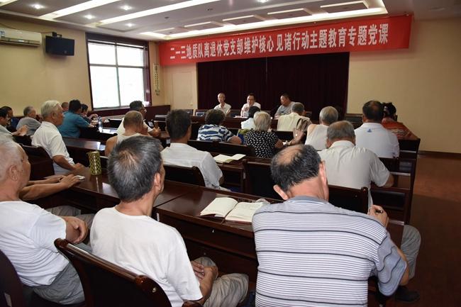 为了扎实开展“维护核心、见诸行动”主题教育活动,深入推进“两学一做”学习教育常态化制度化,近日,二一三队党委副书记赵江涛以“增强核心意识、维护中央权威”为主题,在队二楼大会议室为离退休党支部上了一堂生动的党课,离退休党支部50余名党员参加,党课由队离退休党支部书记王高阳主持。