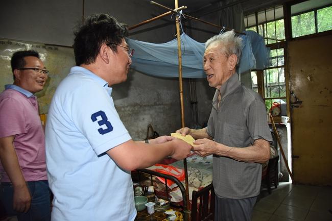 6月29日,二一三队队长杜玉河、党委副书记赵江涛带领队党办、离退休科相关工作人员走访慰问了6位老党员和困难党员,代表队党委向他们致以节日的问候和祝福。