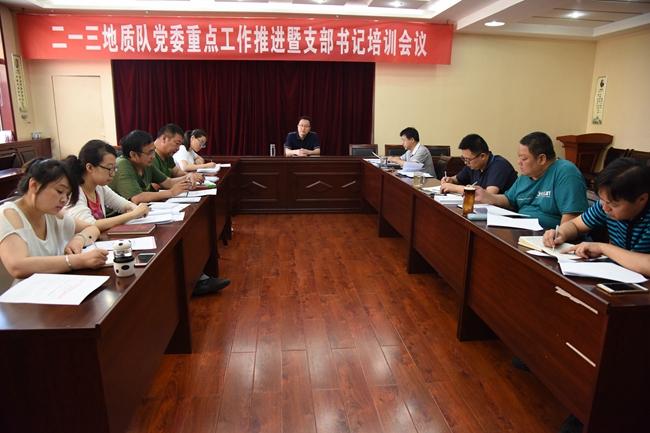 6月16日上午,二一三队在二楼大会议室召开党委重点工作推进暨支部书记培训会议,党委副书记赵江涛、队属各党支部书记和党办工作人员10余人参加了会议,会议由党委副书记赵江涛主持。