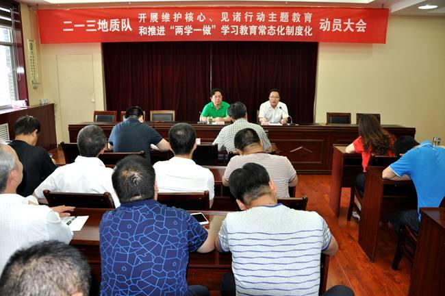 5月25日下午,二一三队在二楼大会议室召开了维护核心、见诸行动主题教育和推进“两学一做”学习教育常态化制度化动员大会,队领导班子成员、各党支部书记、队中层以上干部共60余人参加了大会,会议由队长杜玉河主持。