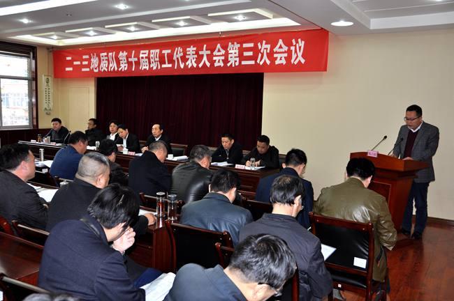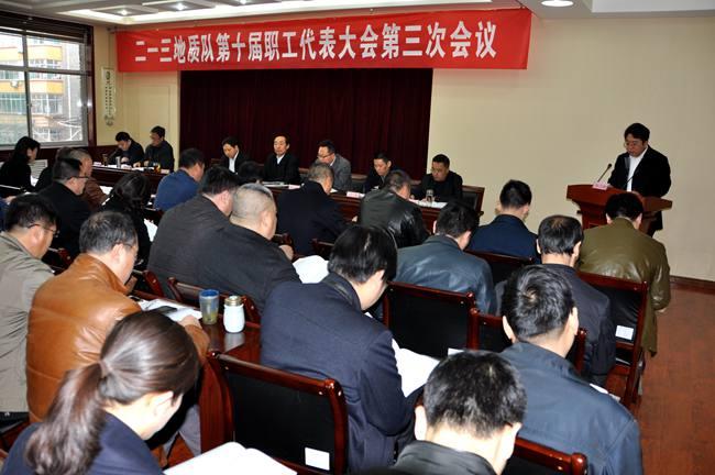 2月28日,二一三地质队第十届职代会第三次会议在二楼会议室召开。全队正式代表、列席代表、特邀代表共75人参加了会议。局纪委书记卫继周、工会主席苏广智亲临指导。