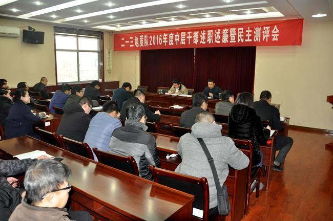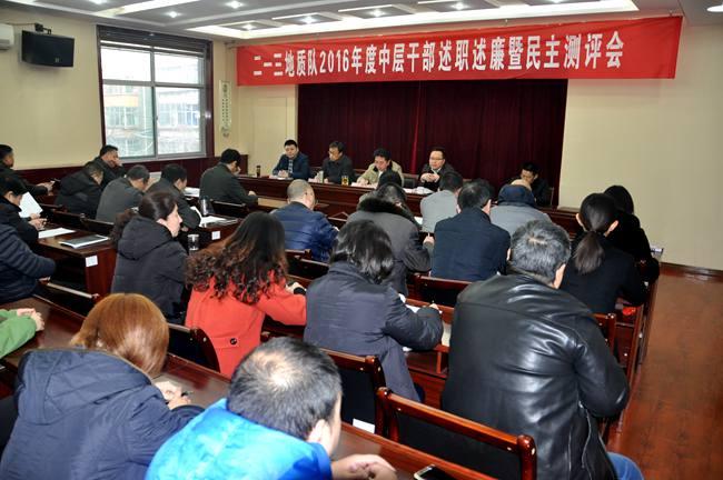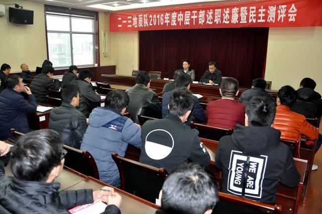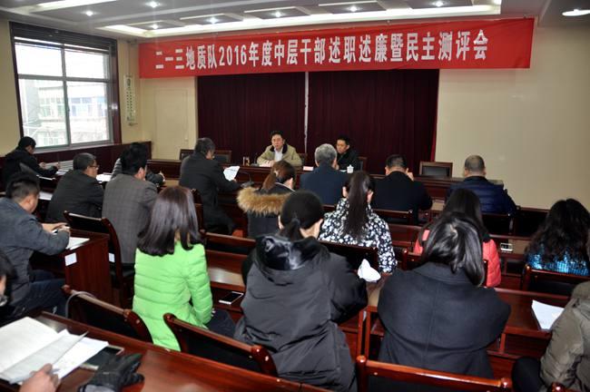 2017年1月5日至12日,二一三队分8次在机关、地调所、一分院、二分院、三分院、四分院、多经、实验室召开了民主测评会,全队69名副科以上中层干部在会上从德、能、勤、绩、廉等5个方面作了述职述廉报告,200余名干部职工本着认真负责、实事求是的态度对全体中层干部进行了民主测评。