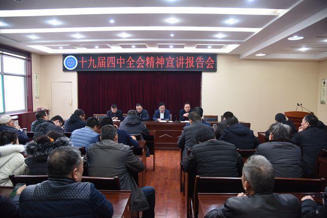 杜玉河处长围绕党的十九届四中全会具有开创性、里程碑意义;中国特色社会主义制度具有无可比拟的优越性;坚持和完善中国特色社会主义制度、推进国家治理体系和治理能力现代化的重点任务;加强党的领导,确保全会精神全面落实到位等四个方面,对党的十九届四中全会精神进行了深入系统的阐释。