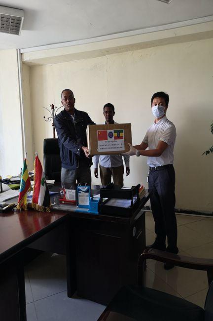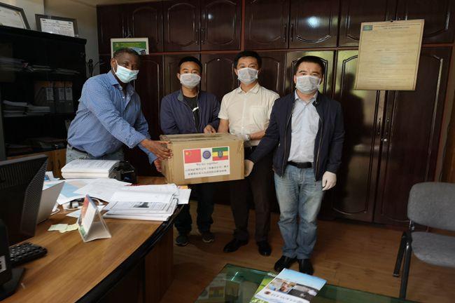 3月30日,二一三队埃塞钻探公司向埃塞国家水能部、首都区供水委员会、国家监理与设计总公司、国家工业园开发总局、奥罗米亚州工业园开发总公司、奥罗米亚州监理与设计总公司等相关单位捐赠了一批医用口罩、防护服、消毒液等防疫物资。