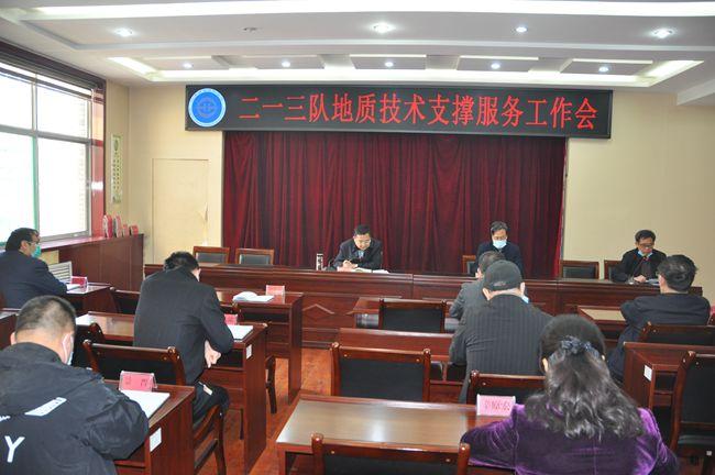 4月3日,二一三队在二楼会议室召开地质技术支撑服务工作会。队长姚文兵出席并讲话,队总工程师吕福清主持会议,队属地质技术服务中心和各县(市)技术支撑单位负责人参加。
