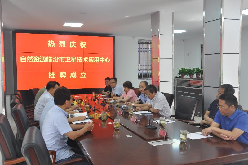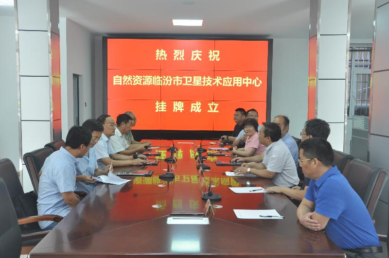 赵江涛书记致辞中代表二一三队党委及全体干部职工对各位嘉宾的到来表示热烈的欢迎,并表示卫星应用技术中心将充分发挥技术和设备优势,为临汾市自然资源部门提供更好的地灾防治、国土规划、遥感测绘、自然资源调查评价等技术服务。省自然资源厅二级巡视员、临汾市规划和自然资源局局长韩明正和省地勘局二级巡视员郭振中为“自然资源临汾市卫星应用技术中心”揭牌。