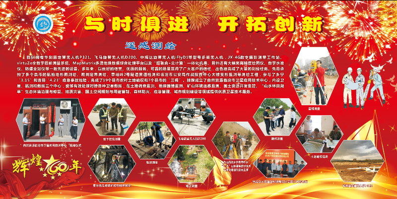 我队拥有全国工程测量甲级资质,拥有无人机6架、影像扫描仪5台、大幅面高精度绘图仪10台,拓普康0.5秒全站仪2台、瑞士徕卡数字水准仪3台、瑞士徕卡防爆全站仪5台、动态GPS45台等一批先进的设备。多年来,以良好的信誉、优质的服务、可靠的质量赢得了广大客户的信任,出色地完成了大量的测绘任务。先后承担了介休市等县市航拍地形图测绘,多项事故抢险,引沁入汾草峪岭2号隧道贯通检测,临汾市公安局作战指挥中心大楼变形监测,新绛县宅基地测量,襄汾、尧都区等19个县市农村土地确权,泽州县、河津市、代县第三次国土调查等多项测绘工程。